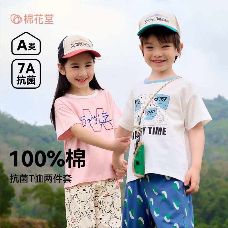 夏日清爽首选!棉花堂儿童短袖T恤来啦!✨ **精选纯棉,A类抗菌**,温柔呵护宝宝肌肤。**透气吸汗,告别闷热**,让孩子尽情玩耍。时尚百搭,男女童皆宜。现在**两件装超值**,让宝宝健康舒适过夏天!赶紧抢购吧!💖